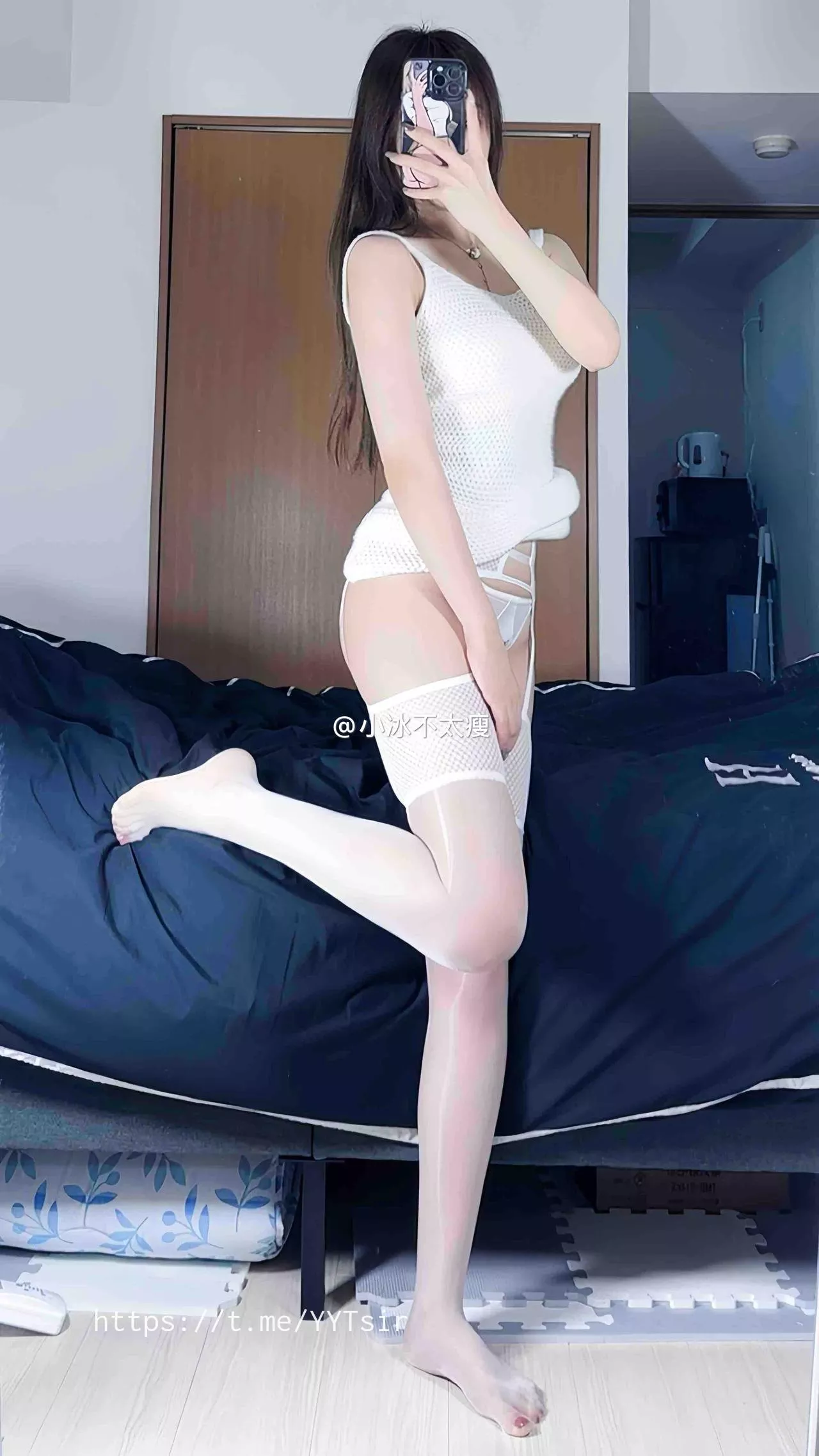 大家好!这里是《抖音 小冰不太瘦 觅圈 微密圈 NO.026期》。今天,小冰为大家呈现了最新的写真,展现出了她完美的身材曲线和迷人的姿态。在这组照片中,小冰穿着性感的白色网状上衣和精致的吊带裤,与她搭配的白色丝袜让人流连忘返。镜头下的每一张照片都完美捕捉了她的优雅与诱惑,散发出无尽的魅力。