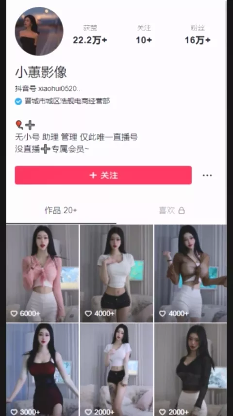 抖音上拥有16万粉丝的擦边网红小蕙影像,日常作品就是各种清凉大胆的服饰,跳着网络热门的擦边舞蹈,给人一种高冷、遥不可及的女神网红形象。然而,实际上她却是一位通过开通会员便能让你看到诸多内容的网红