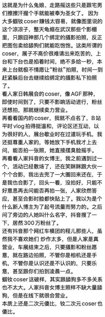 其中一位coser更是微博曝出名言