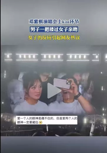 邓紫棋演唱会中场的“亲吻环节”时,镜头会随机捕捉到情侣,并将他们的画面投放到舞台的大屏幕上。大多数情侣在镜头前都会甜蜜地亲吻,但其中一对“情侣”却发生了一点小插曲。当镜头对准这两位时,被亲吻的女子始终面带不悦,引发了观众们的热议。