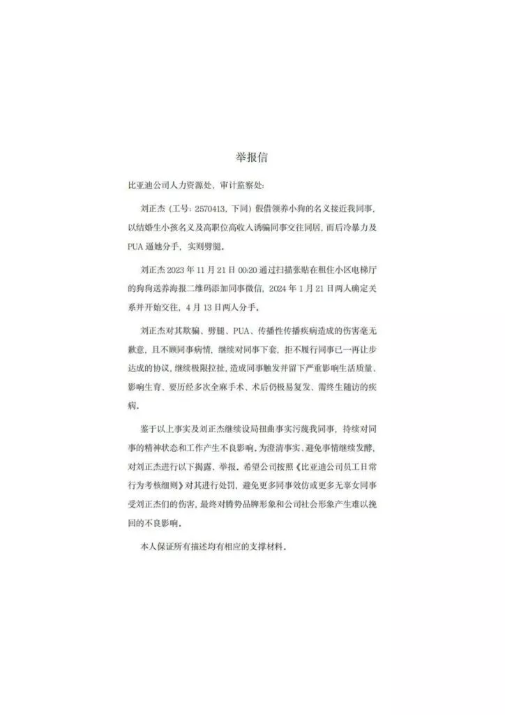 比亚迪劲爆大瓜24页PPT曝光比亚迪毒王工程师刘正杰pua同事【内附原件】