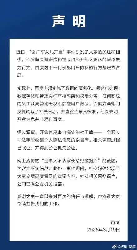 对此,百度方面以及谢广军开启了紧急公关,相继发布道歉声明
