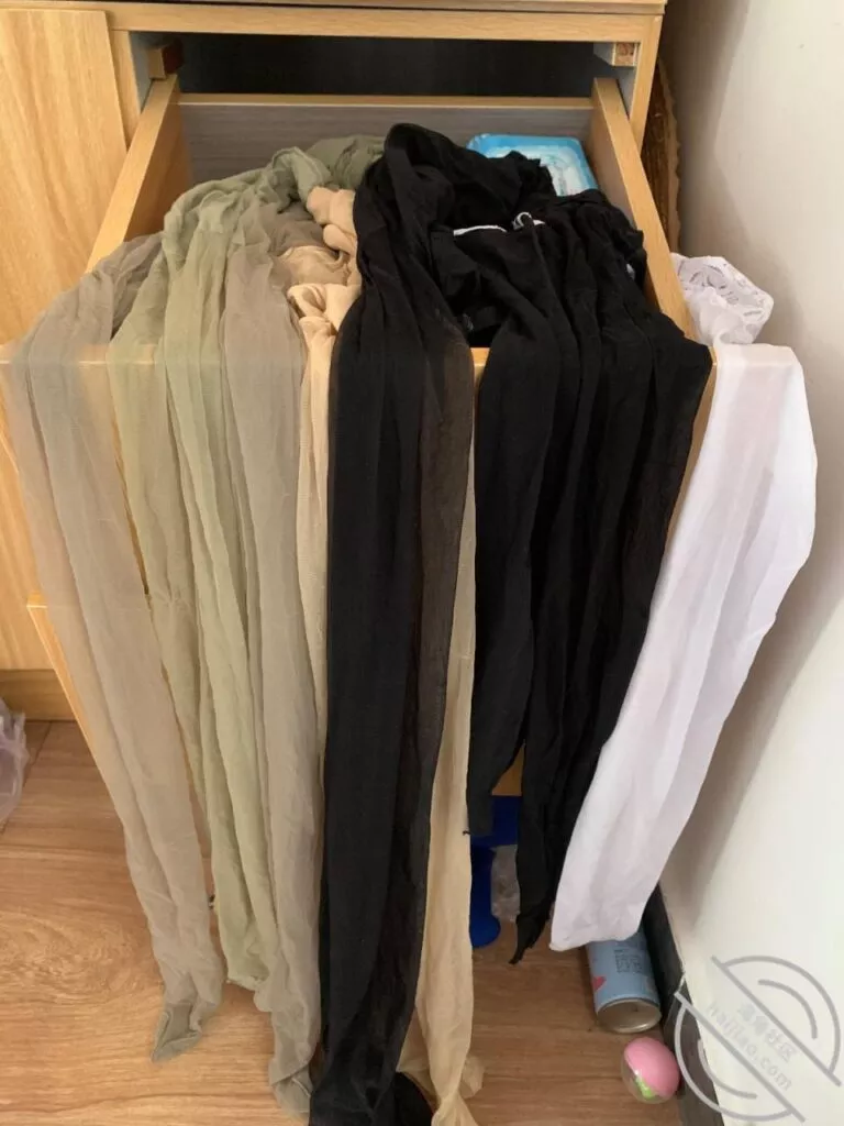 丝袜一抽屉,各种颜色的,黑丝肉丝灰丝,白丝,各种丝。全都是性感网红风,基本上我都看她穿过,都能hold住 内衣选了两件性感的拍给兄弟们看看,内裤拍了两条蕾丝的,其他都是纯棉内裤。 最后当然要选条黑丝到姐姐床上尽情释放一发才能满足。