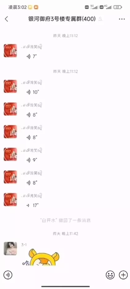 河北武汉银河御府三号楼,本是一个安静的晚上,没成想这三号楼的一对情侣在家中doi声音实在太大,导致周围邻居无法入睡,最后被三号楼业主群疯狂怒怼输出,就是这么个事。