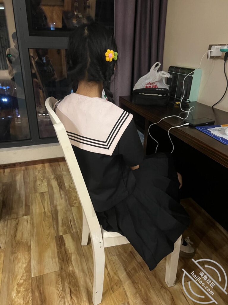 可能是因为我出钱的关系,她又没钱去外面开房,也有可能是真的被我这话打动了,然后走到床边的椅子上坐着不知道在想什么。我看着她的麻花辫还挺可爱的,当时就走上前去,就想摸来着