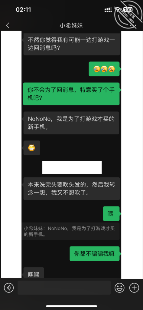 从小妹那边回来以后,因为想着小希的妹妹,我想探探小希的口风。她之前把微信推给我以后,并没有过多的关注我和她妹妹的进度了。