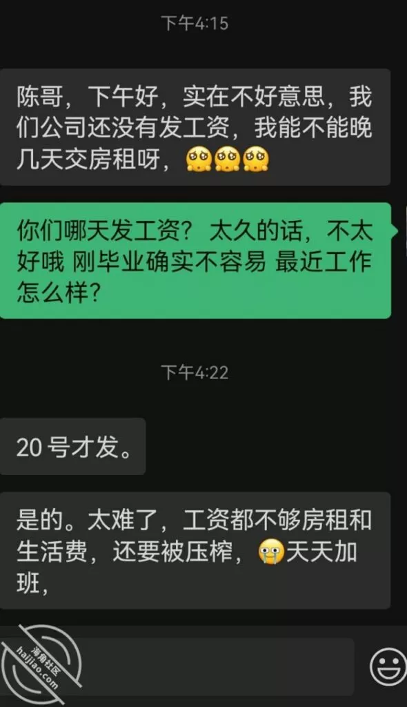 说一下情况吧,昨天是打着见面聊的幌子去拉进距离的,这个小租客估计是最近确实压力大,压抑很久了,打开话匣子之后那是各种吐槽,负能量,边哭边说,等她宣泄完了,距离也拉进了,也大概知道她是啥样的人了,刚毕业,没啥心机,恋爱经验也少,家庭条件比较一般,刚毕业,工资也不高5000多点,生活比较拮据,最近还找朋友结了不少钱,感觉刚毕业就开始了地狱模式,已经磨的快受不了。忽然一下感觉有点不忍心了。哎。