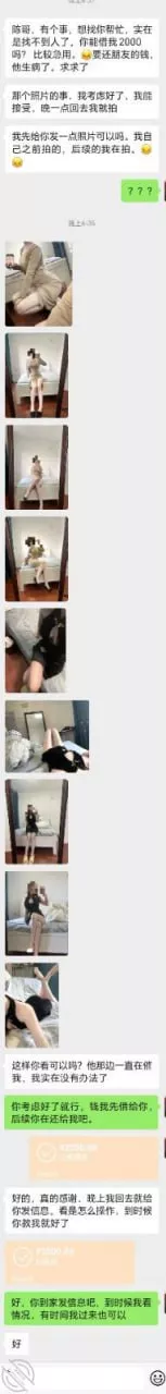。果然人只有着急了,才会快速的做出决定,感谢前面的老哥们给出的宝贵建议,先熟悉,让她相信。不过小弟心里有点担忧,是不是太顺利了我艹,这会不会是大灰狼装小白兔啊,主要是这个照片感觉都是拍好了准备好了,等我上钩一样的,我会不会,2000就买了这几个照片,还要倒贴房租啊。心里有点没地了,太顺了