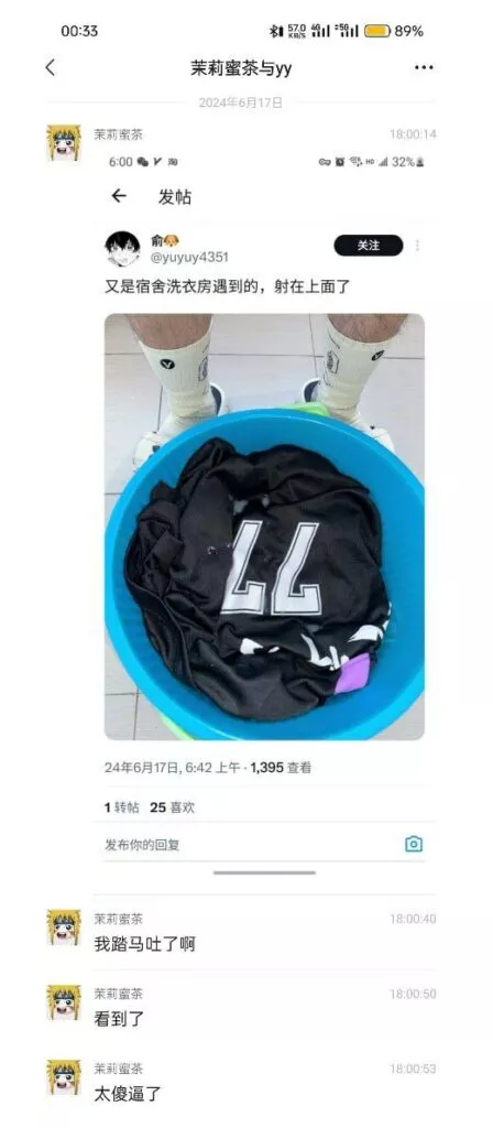 大连外国语大学学院男同宿舍洗衣房球衣袜子打胶事件