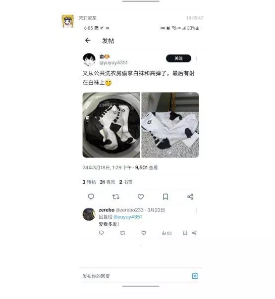 近日,大连外国语大学发生一起事件,一名男同学在学校洗衣房内对着同学的衣服进行不雅行为甚至还将自己的所作所为上传至推特,被其他同学发现这就是自己的同学后堵到此男子宿舍质问当场并报告给学校,引起轩然大波。