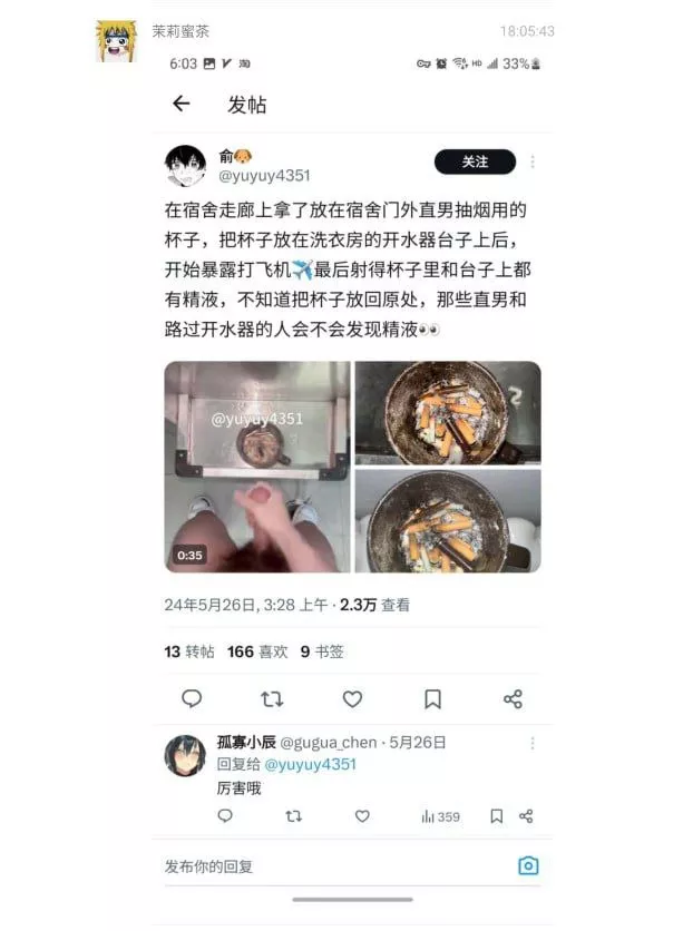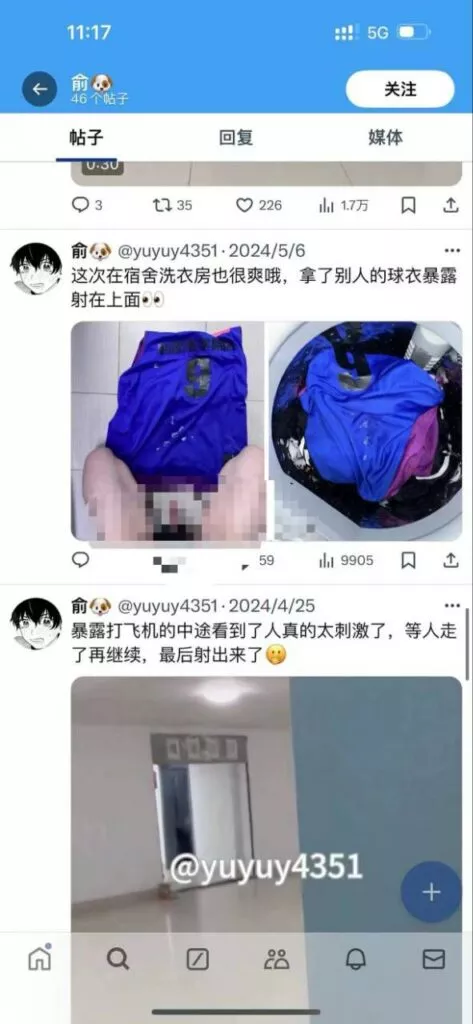 这位男同甚至把视频上传到了推特,被校友发现后逐渐确定这就是自己的同学。