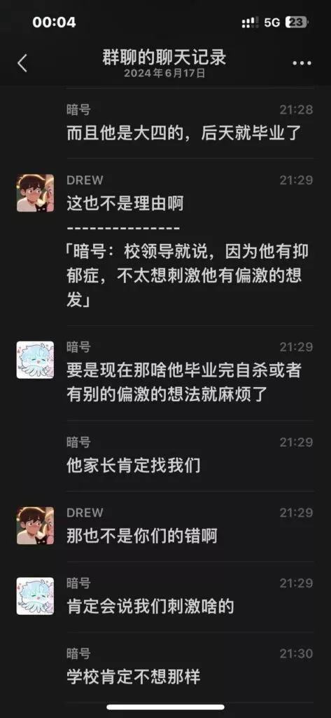 男同被认出后,几位受害者直接堵到男同宿舍当面质问,和他一个宿舍的舍友这会儿估计连饭都吃不下了