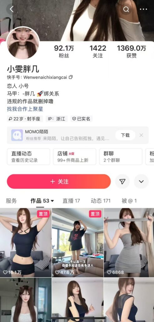快手“纯欲风”粉丝约92万主播小雯胖几,纯欲风格嫩妹擦边,极致的反差感也是成为老司机的最爱,高价定制大尺度福利视频流出