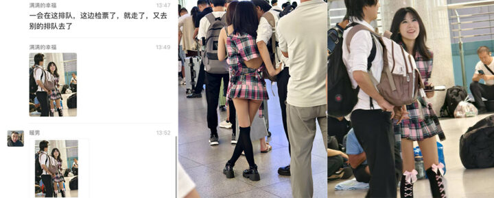 潍坊火车站SM情侣大佬出没女子身着齐B短裙候车厅巡回展览