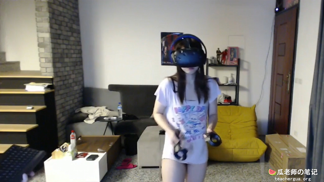 TP某知名女主播忘关摄像头,在家不穿内裤和男朋友一起玩虚拟头盔游戏,普通话对白