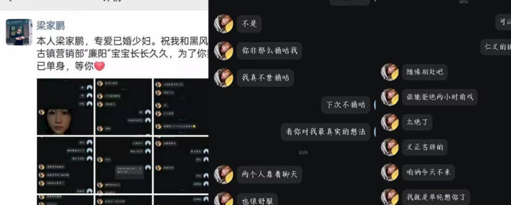 最爱人妻黑风关古镇营销部廉阳婚内出轨梁家鹏朋友圈曝光不雅视频聊天记录